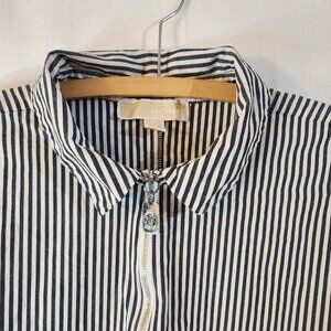 Michael Kors Women's Blouse 1/2 Zipper Pullover Stripes Black and White Size XL