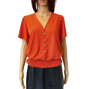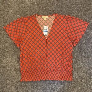 Michael Kors Women's Blouse Sea Coral Short Sleeves V-Neck Top Size XL - NWT $98