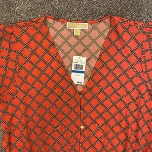 Michael Kors Women’s Blouse Top – Sea Coral Chain Print – Size XL – NWT – MSRP $98