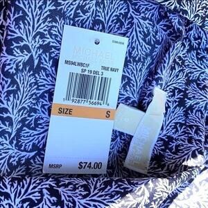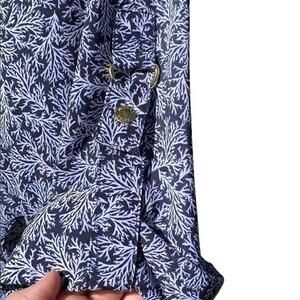 Michael Kors Womens Blouse Top Floral Silky V Neck Pullover Blue White Small