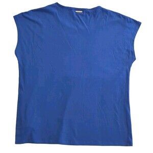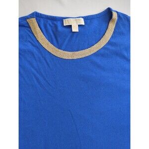 Michael Kors Women's Blue Knit Top Gold Accent Neckline Sleeveless Plus Size 0X