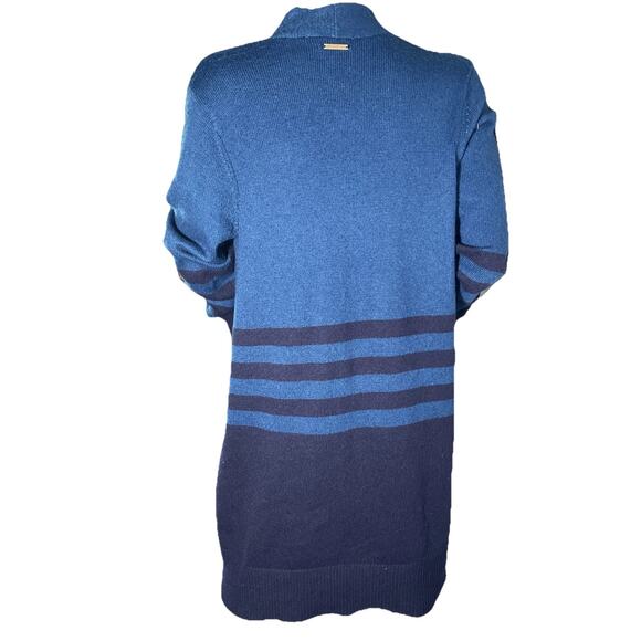 Michael Kors Women's Blue Long Cardigan Single Permanent Button Pockets- Large