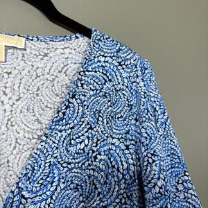 Michael Kors Women's Blue Swirl Y2K Buckle Accent Top - Medium - Empire Waist