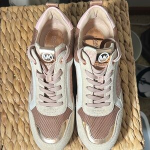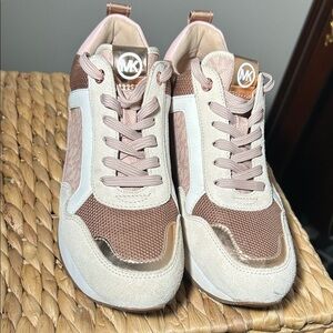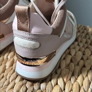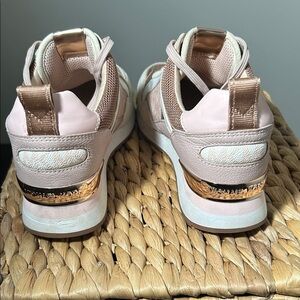 Elegant sneakers with blush tones and gold accents. Perfect for casual outings.