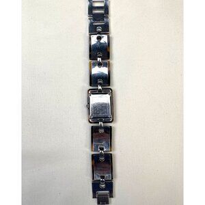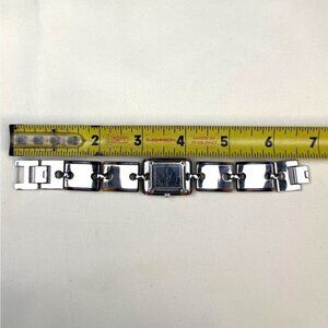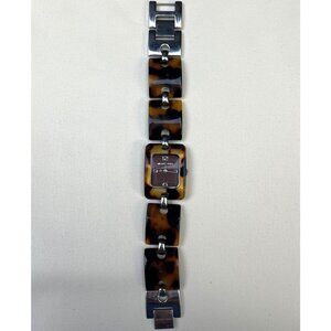 Features a link styled watch with beautiful leopard like print design all around and a nice squared watch face. Excellent condition: has minor scratches. SOLD AS IS AND NO RETURNS in need of batteries. This item has been cleaned, sanitized and deodorized.