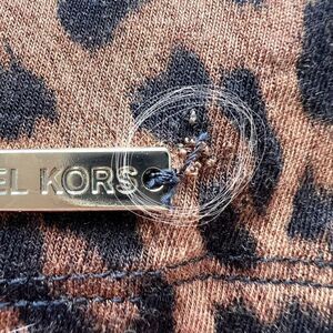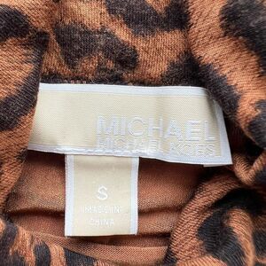 Michael Kors Womens Brown Leopard Print Short Sleeve Turtleneck Top Size Small