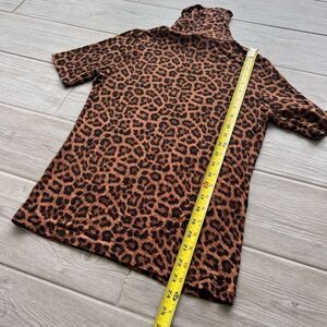 Michael Kors Womens Brown Leopard Print Turtleneck Short Sleeve Top Size Small
