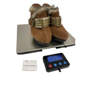 Michael Kors Women's Brown Suede Fur Trim Slip On Studded Heeled Mule Clogs 7.5M