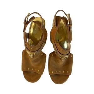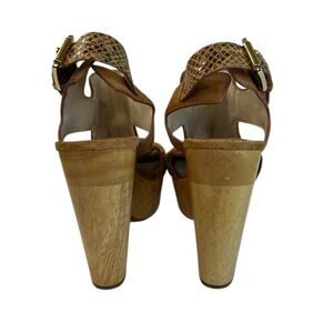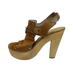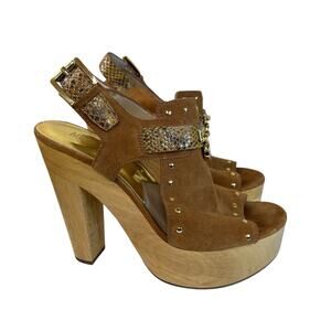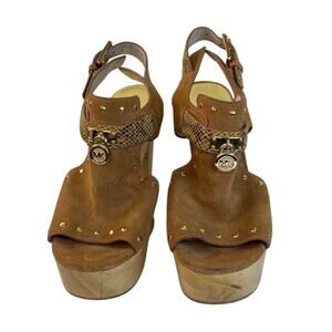 Michael Kors Women’s Brown Suede Snake Skin Wood Platform Clog Sandals Size 10