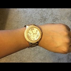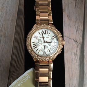 Brand new 43mm Michael Kors Women's Camille Rose Gold Tone White Dial MK5636 Glitz Chronograph. It needs a new battery.