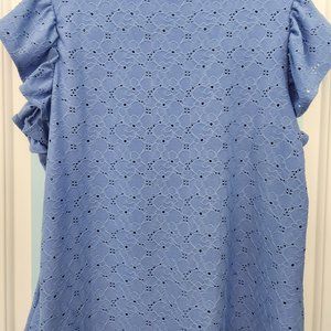 Michael Kors Women's Pointelle Cap Sleeve Top, Blue Size Large.