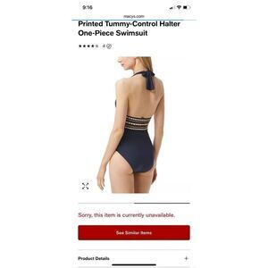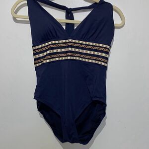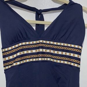 Michael Kors Women's Chain Border Tummy Control Halter Navy One Piece Size 12
