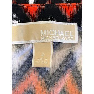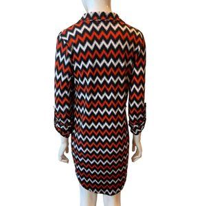 Michael Kors Womens Chevron Button Up Shirt Dress Roll Up Sleeve Red Black SZ 2