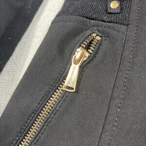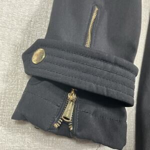 Michael Kors Womens Coat Black Gold Trim Zip Belted Long Jacket Size Small