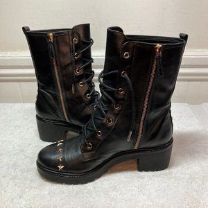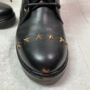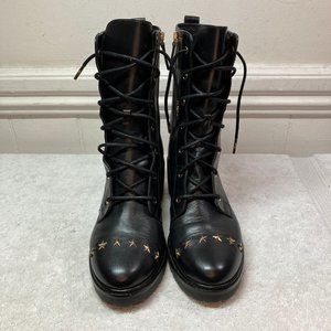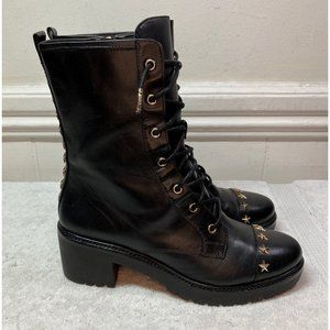 Michael Kors Womens Cody Gold Star Studded Leather Combat Boots 8.5 Black RARE
