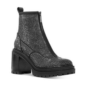 Michael Kors Women's Cyrus Zip Booties Embellished Black Silver Size 7.5