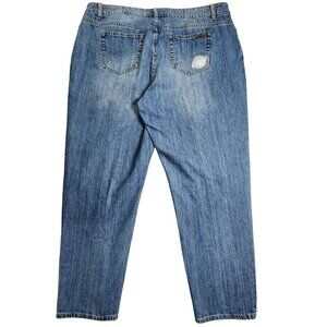 Michael Kors Womens Dillon Relaxed Fit Patchwork Distressed Blue Denim Jeans Siz