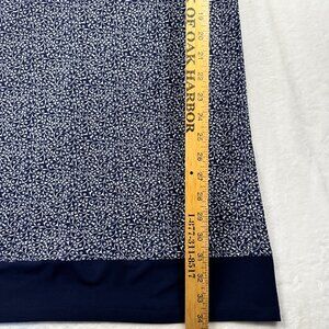 • Features a navy and white floral print
