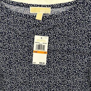 Michael Kors Womens Dress Navy White Floral Print Short Sleeve Size S NWT Preppy