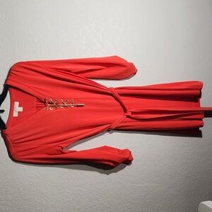 Michael Kors Womens Dress Size M Longsleeve Peachish Gold Midi Belt Tunix