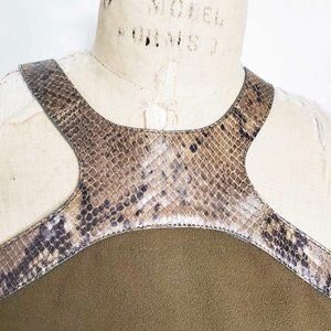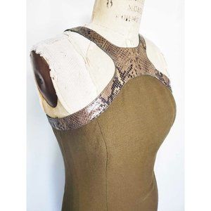 Michael Kors army green crepe stretch dress with amazing phyton leather trim.