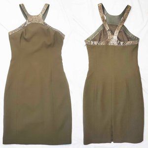 Michael Kors Womens Dress with Python Leather Neckline Racer Back Army Green 4