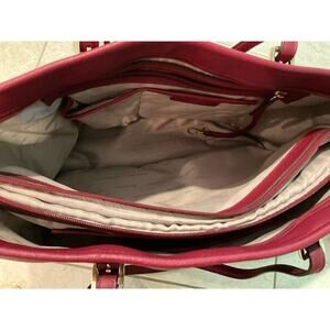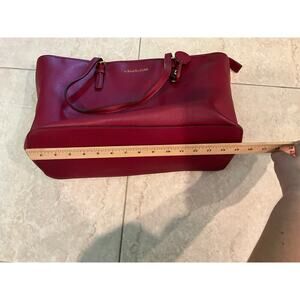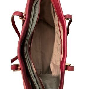 Michael Kors Women's Fashion Burgundy Leather Inner Zip Pocket Handbag Tote Bag.