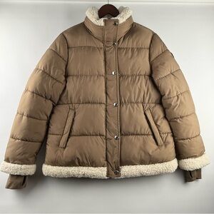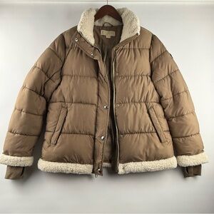 Michael Kors Women’s Faux-Fur-Trim Puffer Coat – Taupe, Size Large
