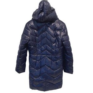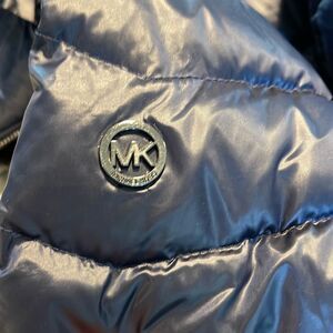 Michael Kors Womens Full Zip Faux Fur Collar Hooded Down Puffer Coat Navy Small