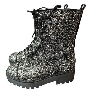 Michael Kors Women's Glitter Dark Berry Bryce Lug Sole Combat Bootie SIZE 9