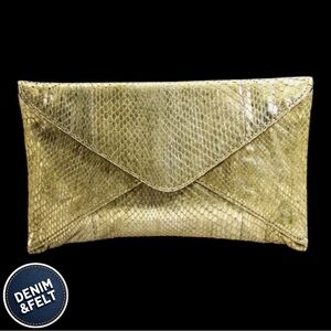 Michael Kors Womens Gold Embossed Reptile Skin Envelope Clutch Bag/Crossbody 🐍