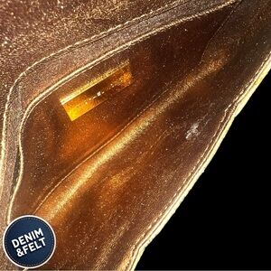 This bag is in Preloved and has some creasing and usage wear. It’s a beautiful bag! I have added a crossbody strap that you can remove and just carry as a clutch if you’d like.🩷The outside is gold and the inside is a beautiful bronze color.