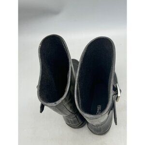 Michael Kors Women's Gold Logo Tall Rain Boots Wellies Black Buckle Boot Size 6