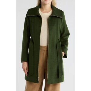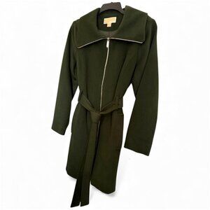 Michael Kors Womens Green Full Zip Belted Wool Blend Mid Length Coat Sz XL New