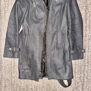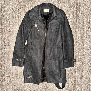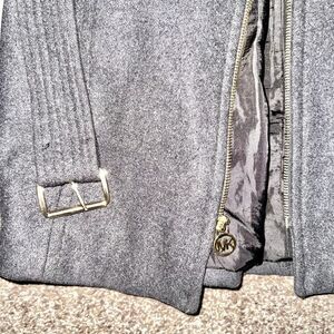 Michael Kors Women's Grey Wool Blend Gold Zipper Front Coat Jacket