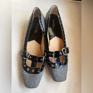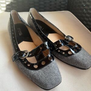 Michael Kors Women’s Grey Wool and Leather Mary Jane Buckle Flats Size 8