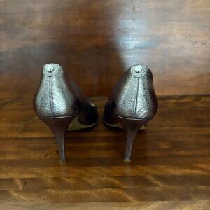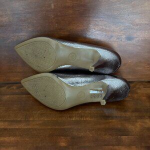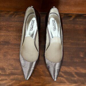 Michael Kors Women's Heels Silver Metallic Snakeskin Print Leather Upper Sz 9