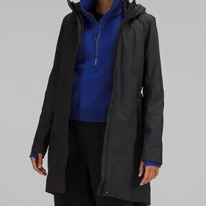 - Stand collar with zip-off hood; front zip closure