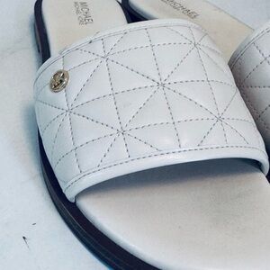 Michael Kors Women's Ivory Quilted Faux Leather Slide Sandals