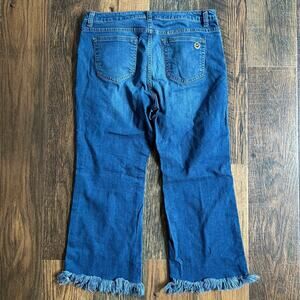 Michael Kors Women’s Jeans Size 10 Blue Denim Frayed Hem Flare Crop