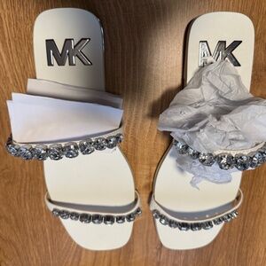 Michael Kors Women's Jessa Rhinestone Slip-On Double Strap Slide Sandals
