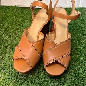 Michael Kors Womens Jessie Sandals Brown Platform Heels Buckle Eyelet