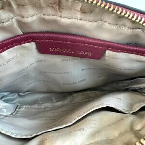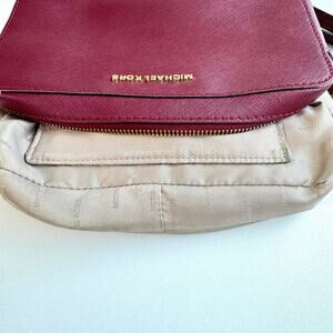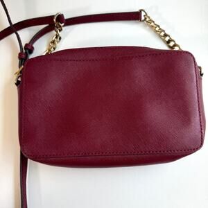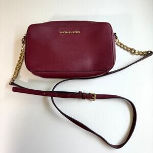 Michael Kors Womens Jet Set Leather Crossbody Goldtone Chain Dark Berry Red