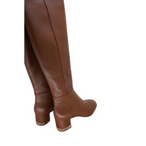 Michael Kors Women's June Leather Knee-High Boots Gold Hardware 8.5M