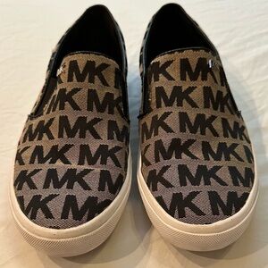 Michael Kors Women's Keaton MK Logo Slip On Sneakers Shoes 9.5 gray black