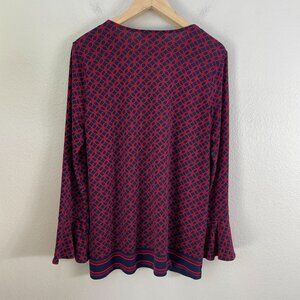 Michael Kors Womens Large Long Sleeve Stretch Top Red Rope Print V Neck Blouse