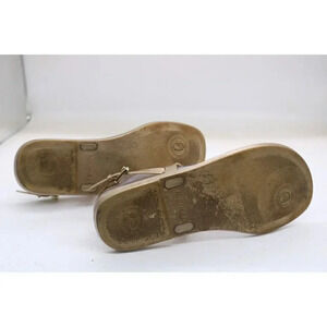 Michael Kors Womens Lillie Gold Size 7 MK Logo Plate Jelly Thong PVC Sandals