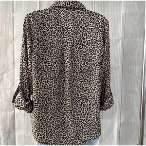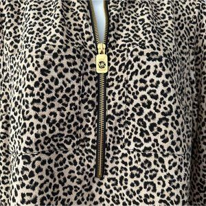 Michael Kors Womens Long Sleeve Blouse Front Pockets Zipper neck front Animal Pr