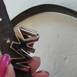 Michael Kors Womens MK Logo Brown/ Black Reverseible Belt Silver MK Buckle L/XL