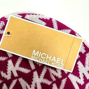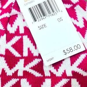 Stay cozy and stylish with this Michael Kors Women's Fuchsia White MK Logo Cuff Beanie Knit Hat. Perfect for travel, activewear, or casual occasions, this lightweight and breathable beanie features a monogrammed MK logo in a pink knit fabric. The one size fits all design makes it easy to wear, while the reversible feature allows for versatility in your outfit choices. Ideal for fall, winter, or spring, this designer hat is a must-have accessory for any fashion-savvy woman.